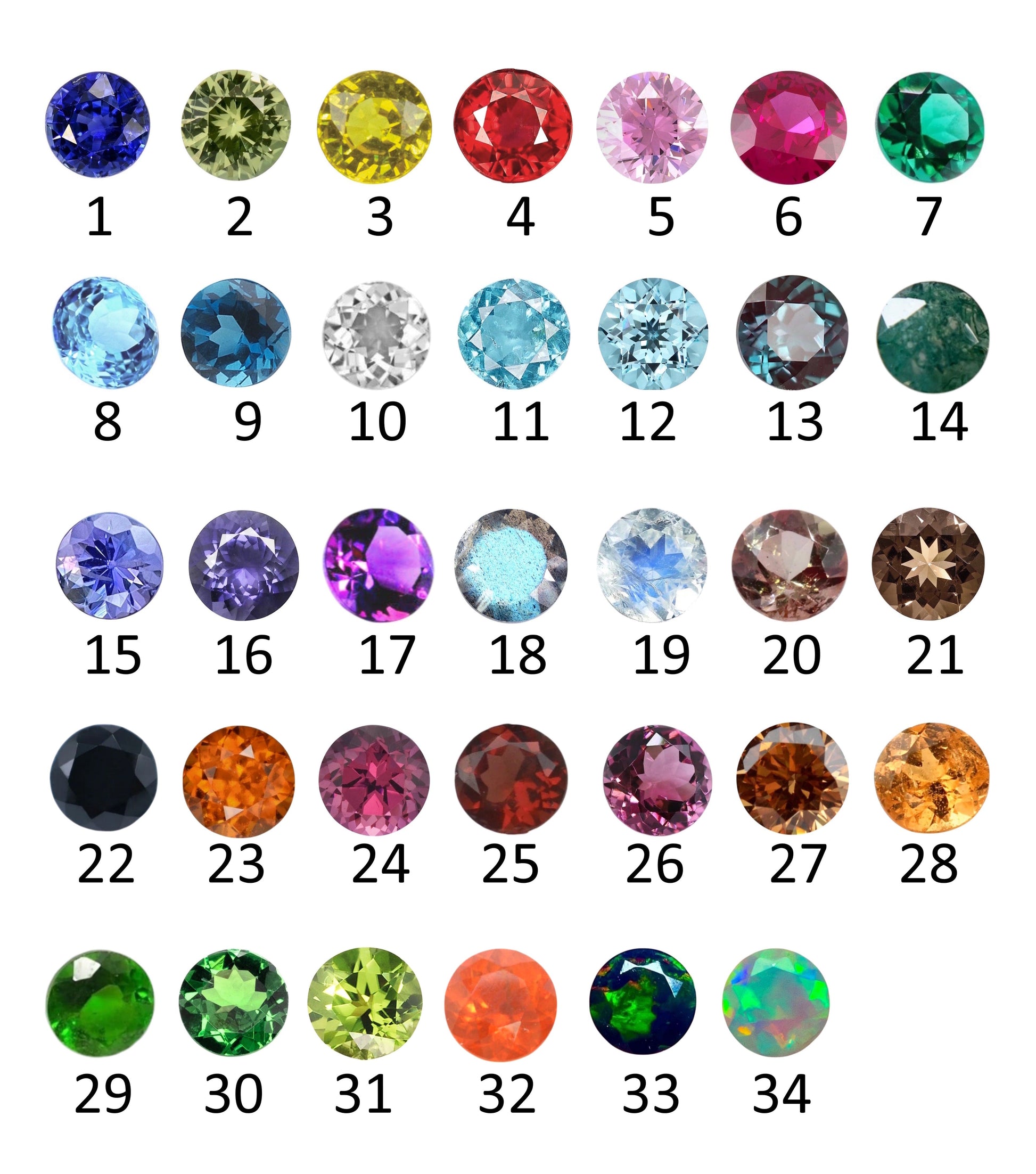 Available gemstones are: